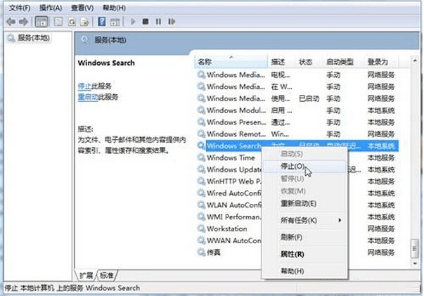 关闭系统搜索索引服务 win7被称为硬盘杀手,占用硬盘使用率很大比例的搜索功能,一旦硬盘使用率达到100%,电脑运行起来将非常慢,因为,对于控制硬盘使用率很好的一个方法就是关...