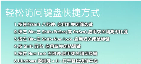 你不知道的win7组合键 这些组合键你知道吗? 1、按住右Shift键八秒钟:启用和关闭筛选键 2、按左Alt+左Shift+PrtScn:启用或关闭高对比度 3、按左Alt+左Shift+Num Lock:启用或关闭鼠标键 4、按...