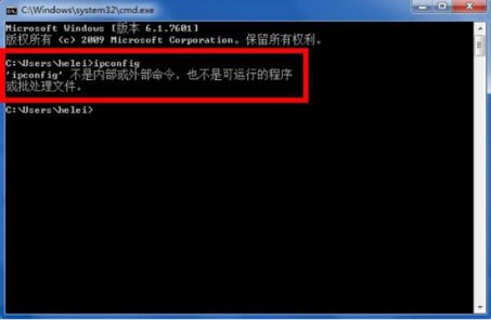 win7系统输入ipconfig显示不是内部命令怎么解决