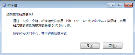 在Win7系统中,连续按5次就可以打开启动窗口。但有些用户在玩某些游戏时可能需要多次使用到shift键,不小心就打开了粘滞键的窗口,导致操作失误,令其感到不适,具体方法请看下面...
