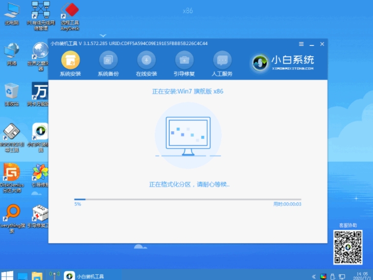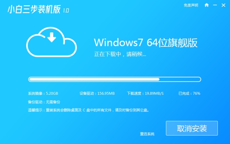1. 在白系统干事网络上,我们将下载和启动小白三步安装程序,然后选择Win7旗舰系统在主页上安装。