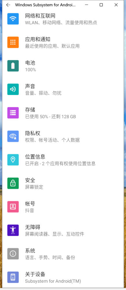 WSA 设置接口只能访问 Andres 儿童系统的“ 文件” 程序, 程序本身的系统设置被隐藏。 然而, 我们可以通过安装第三方启动器( Launcher) 来检查它, 例如微软的微软桌面 。
