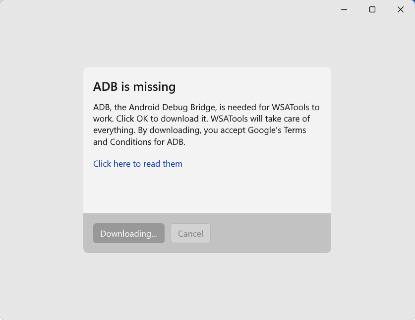 意大利开发商Simone Franco创建了WSATools(WSATools),这是一个简化APK安装的图形界面工具:只需要双击即可,不需要学习和安装亚银。 如果在您的 PATH 中已经有一个亚银软件包, 它会立即调用 。
