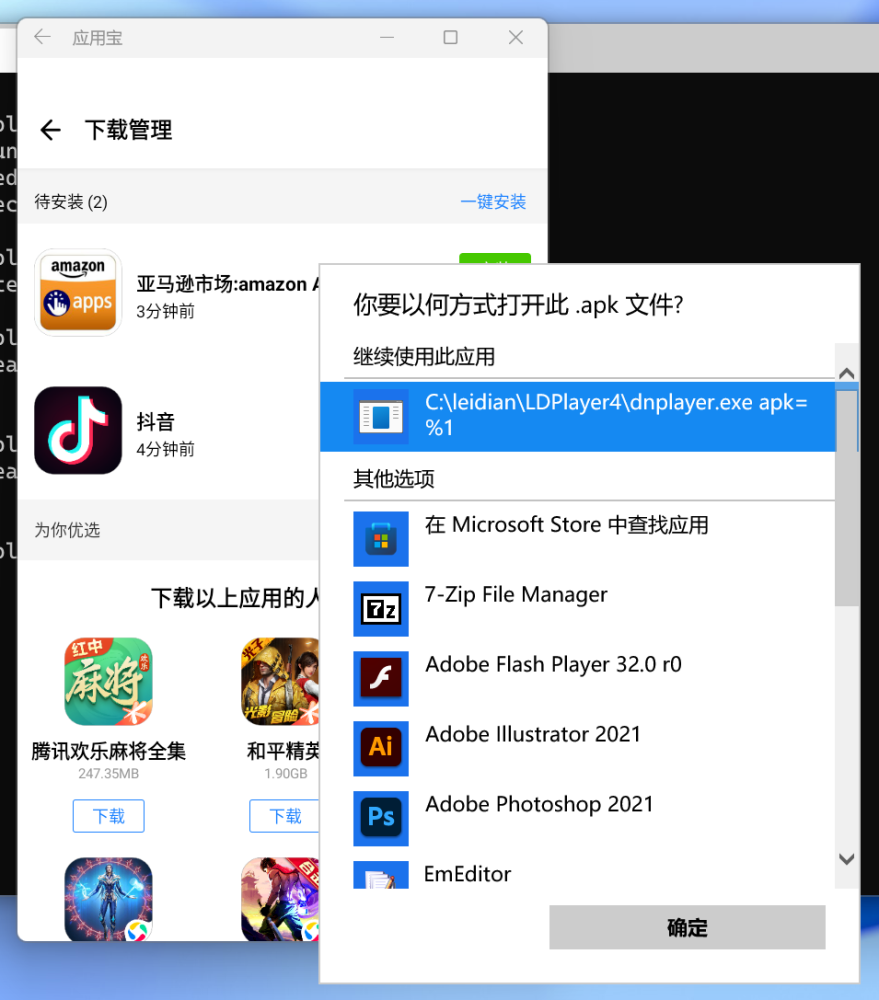 如前所述,Win11接管了WSA文件协会,这就是为什么启动APK安装包的问题从 Win11 公开方法对话框中删除的原因。
