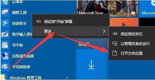 2。 在部件菜单项中, 定位抓图工具菜单项, 右键单击菜单项, 并在弹出菜单栏中选择一个大数字/ 打开菜单项的文件部分 。
