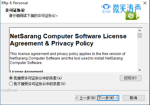 3. 接受许可协议,点击下一个按钮进入下一阶段。