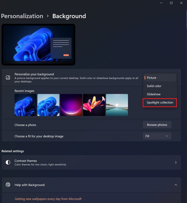 Windows 操作系统有一个焦点功能,使用户能够自动更改锁屏界面的背景,这也是最新的 Win11 预览中包含的。