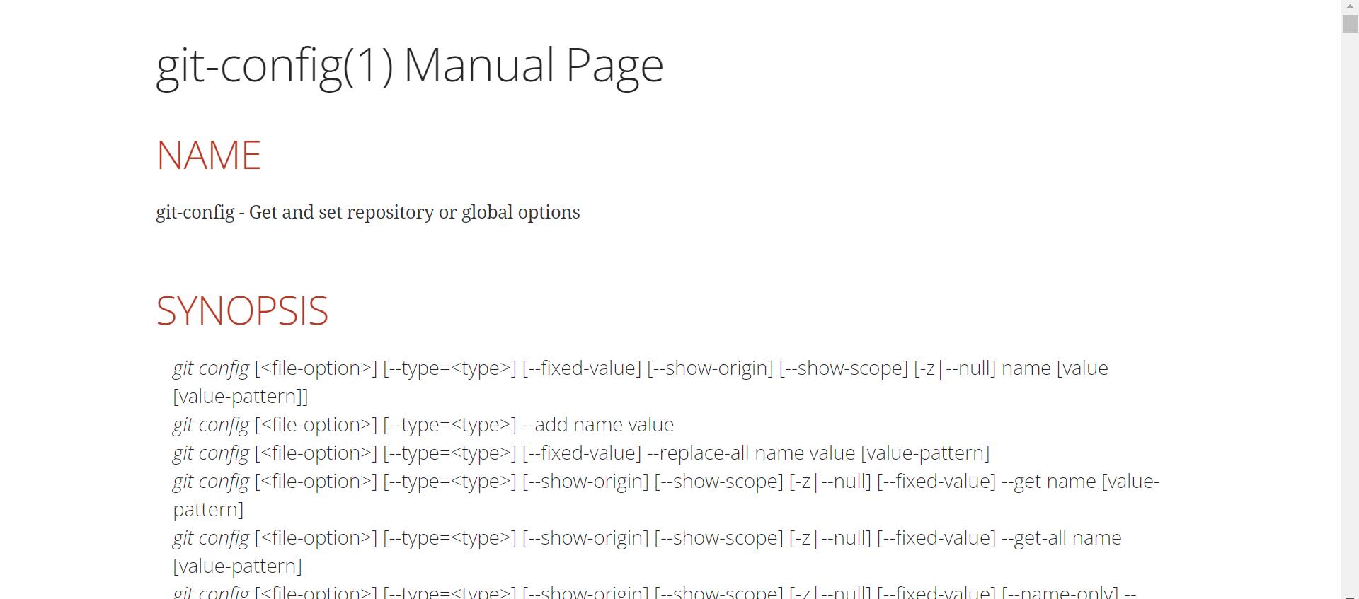 可以使用git help <verb>命令可在浏览器中打开帮助手册,无需网络连接,例如: