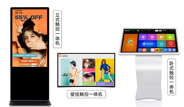 卧式触控一体机,这相当于把一个基地 放在一个墙到墙的触摸到一个机器下面把原来的触手放在座位的底座上落地式横屏安装,维护方便,有几个网络可以统一地加以控制。18.5/21.5/32/43/50/50/55/65/75/86/98英寸(可选择)。