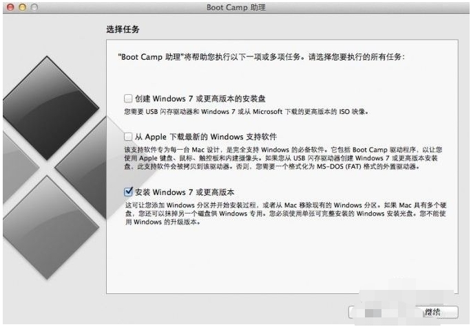 插入 WIN 系统磁盘,选择从苹果下载最新的 Windows 支持软件,单击进行,等等。这个系统将自动将 Windows 下载到磁盘上。