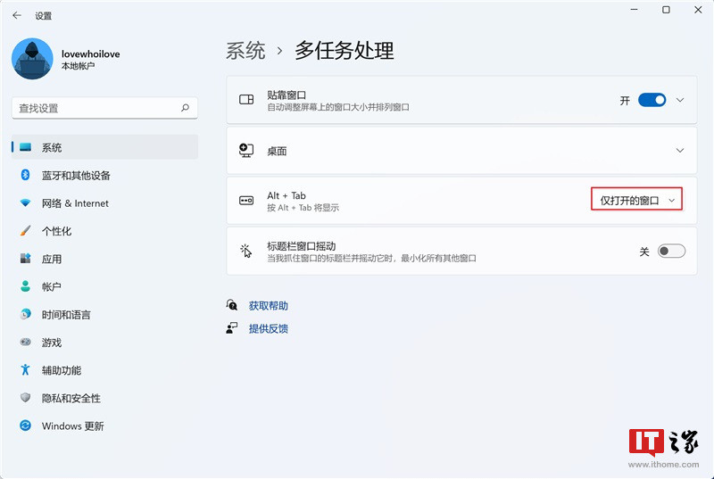 Alt+Tab 选项 [Alt+Tab] 选项 : 在启动后台程序后快速切换应用程序。 为了协助此选项, 我们需要配置合适的设置。 如下文所示, 导航到 [系统][多任务] 选项 [Alt+Tab], 并替换为 [仅打开窗口] 选项 。
