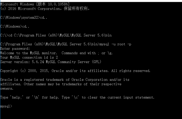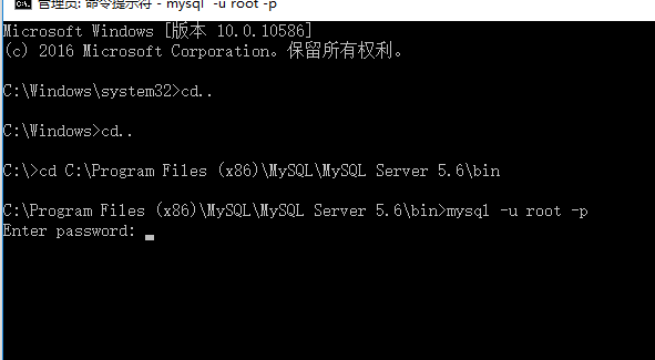 回到车上然后输入类型: cd C:Program 文件(x86) MySQLMYSQL 服务器 5.6bin。