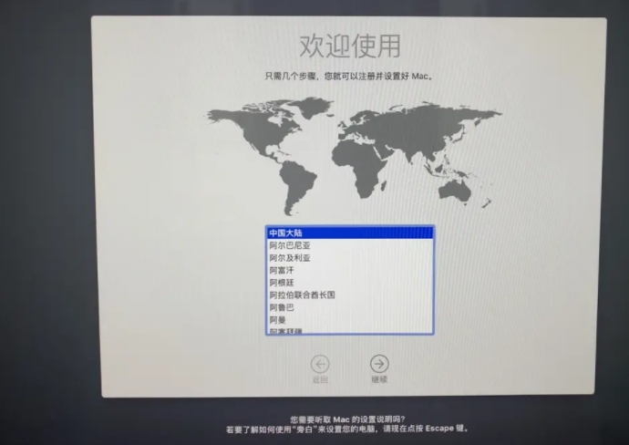 当安装完成后, 我们可以根据我们的偏好配置苹果系统。 建议我们选择一种民族语言, 中国, 在此 。