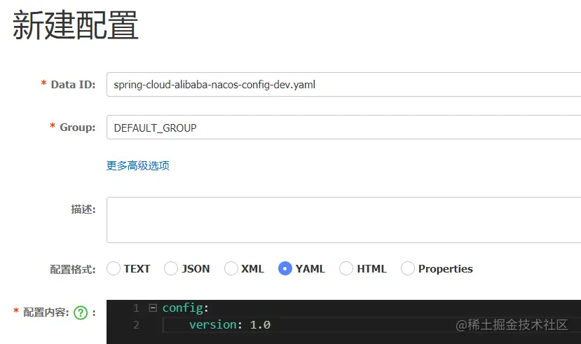 例如上图中所展示:spring-cloud-alibaba-nacos-config-dev.yaml