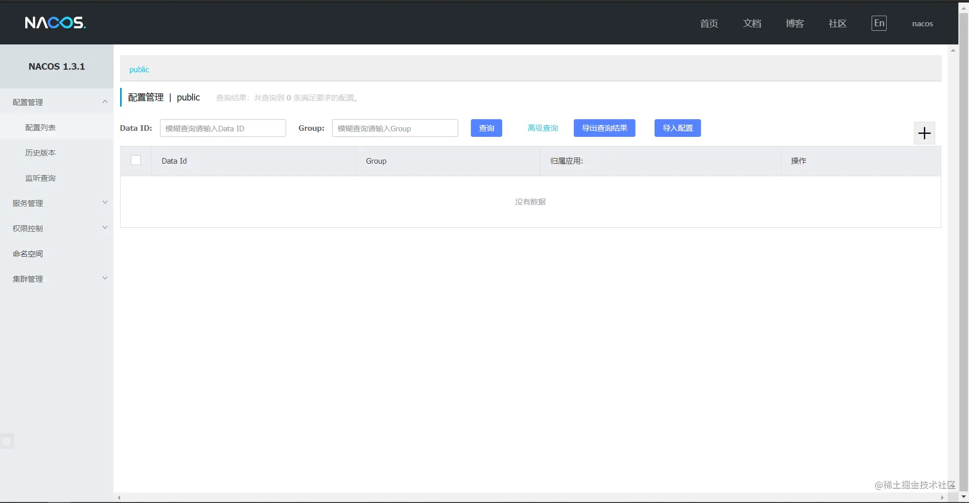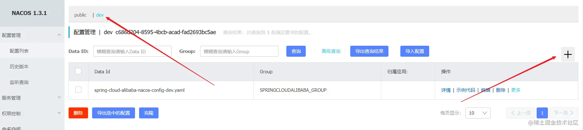 访问Nacos面板,进入到:配置管理->配置列表->+