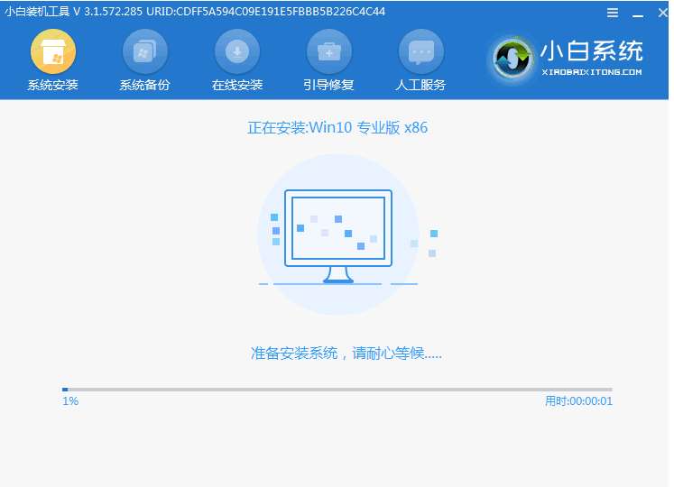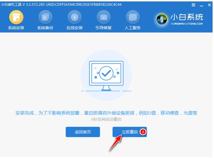 4.进入pe系统后,打开小白工具,选择安装系统,安装后重启。