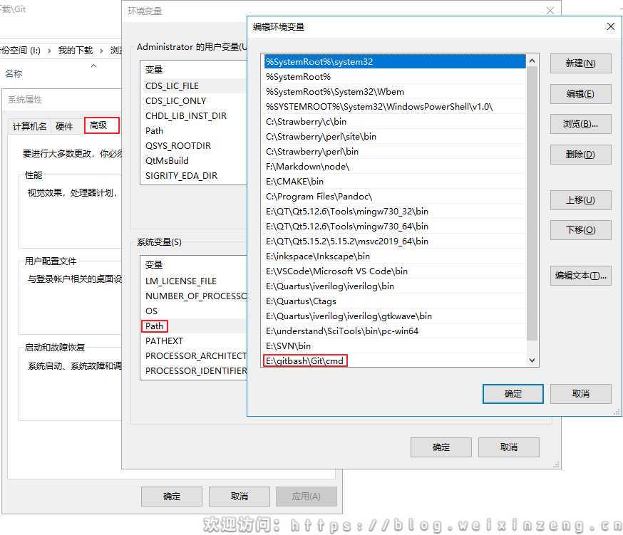 右击计算机–》属性–》高级系统设置–》高级 --》环境变量–》系统环境变量–》Path–》查看路径。我的是E:gitbashGitcmd