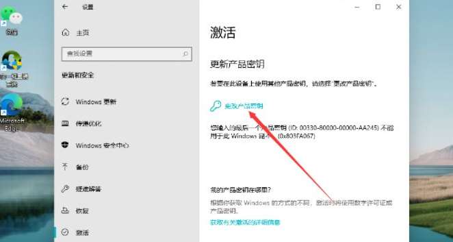 2.在更新与安全的页面中点击【激活】,此时右侧会出现一个【更改产品密钥】的选项。