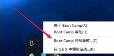 1、在右下角打开BOOT CAMP图标,点击bootcamp控制面板。