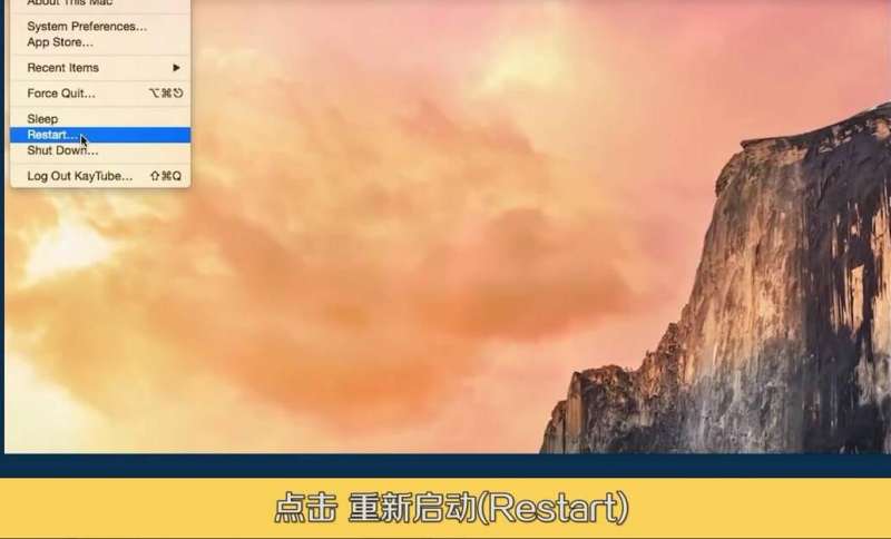 4、点击左上角苹果标志,点击重启(Restart)即可。