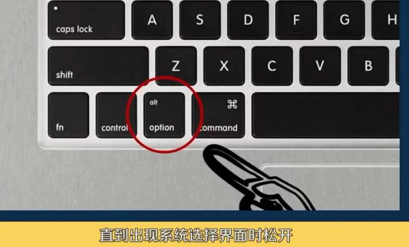 1、按住键盘alt(option)直到出现系统选择界面再松开。