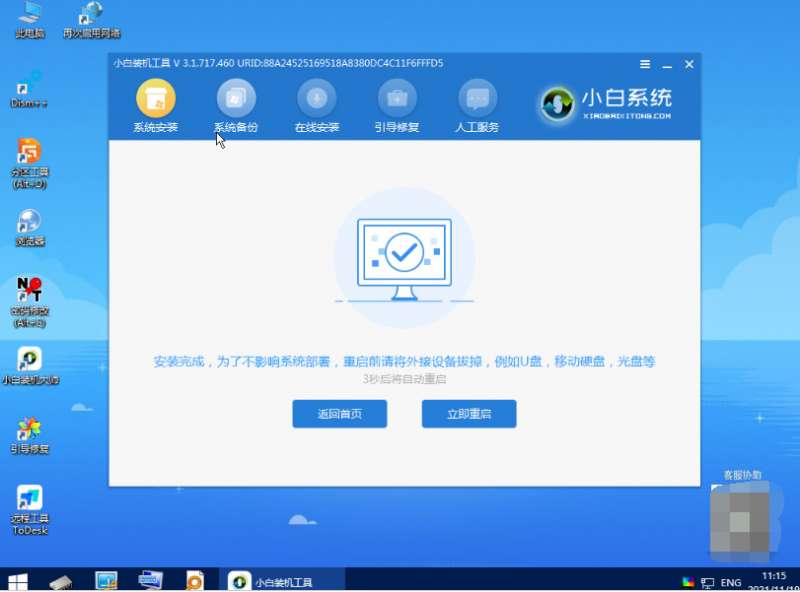 在pe系统内软件自动安装,直到提示安装成功后重启电脑;