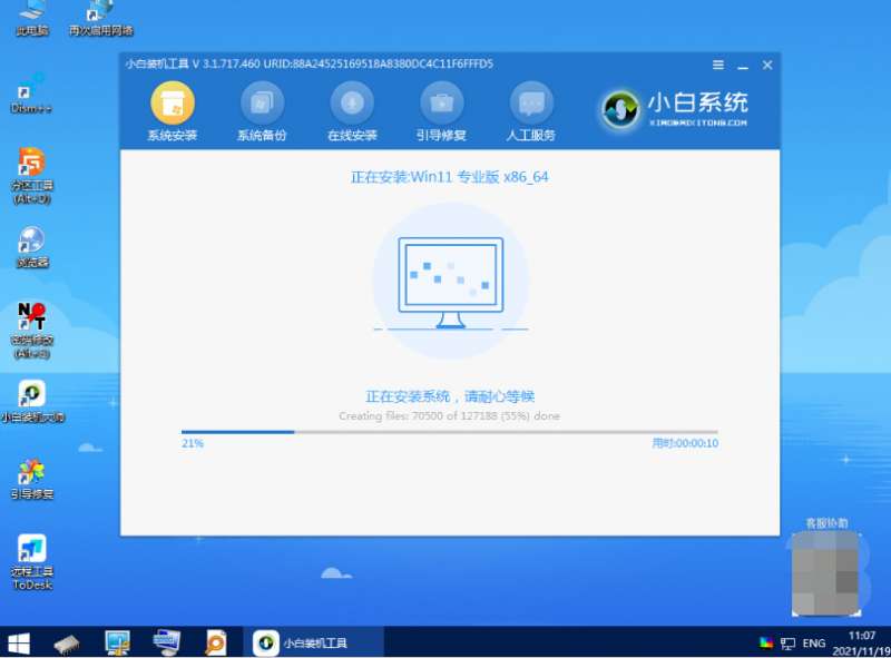 5、进入pe系统后,小白装机工具自动安装win10系统,无需操作。