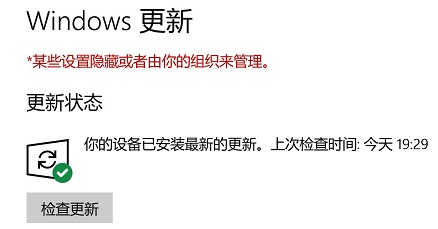 7、激活完毕后,选择【Windows更新】项,点击检查更新(非必须)后,就可以看到带※的红字内容《某些设置隐藏或者由你的组织来管理》已经完全消失了。