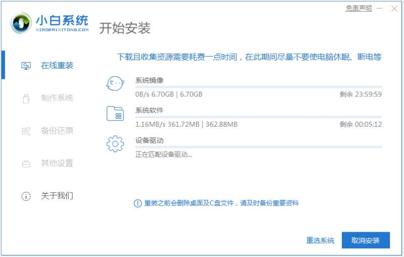 2、等待小白软件下载win10系统镜像文件资料等,无需操作。