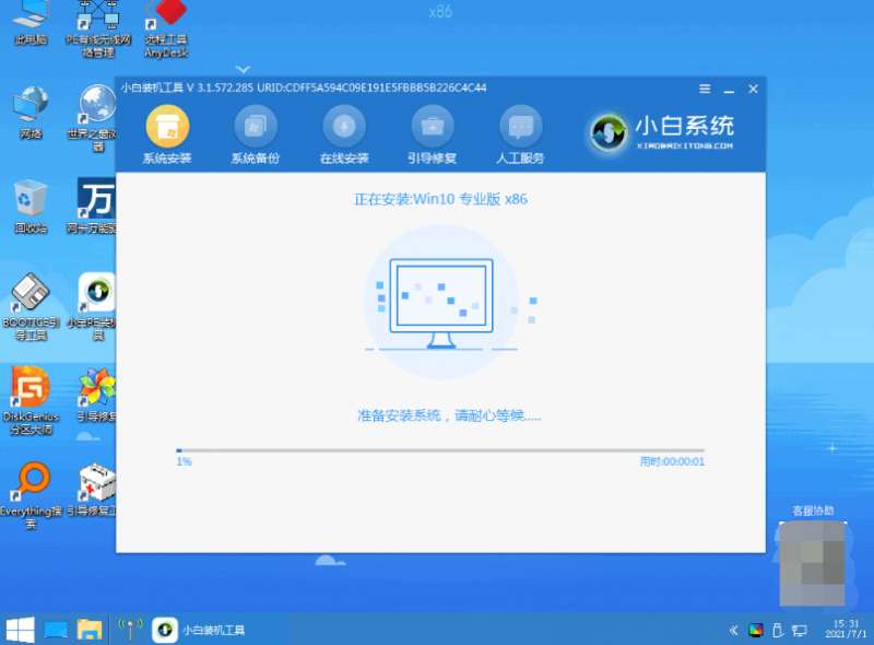等待小白软件自行下载win10镜像后重启进入pe系统;
