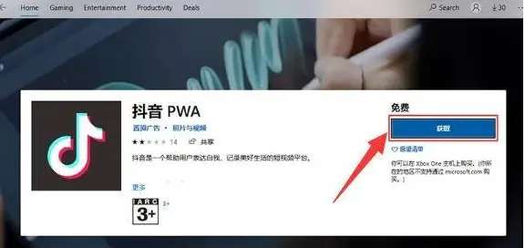 3、我们在对应的安卓的应用程序详情页面,点击“获取”这个选项。