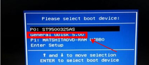 2. 使用向上和向下箭头键进入“Udisk 5”。00时,输入驱动器以重新装入Udisk系统,或另选Usb或u-disk名称。