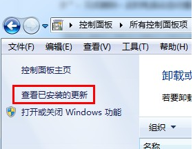 六、删除KB2839229补丁。以WIN7为例:首先点击左下角开始按钮------>控制面板------>添加或删除程序------->查看已安装的更新。