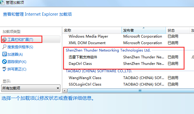 原因:浏览器的迅雷组件没有启用