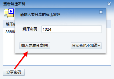 如果你下载了一个知道解压密码的压缩包,也可以通过“分享密码”按钮,将密码分享给大家。利人利已~!