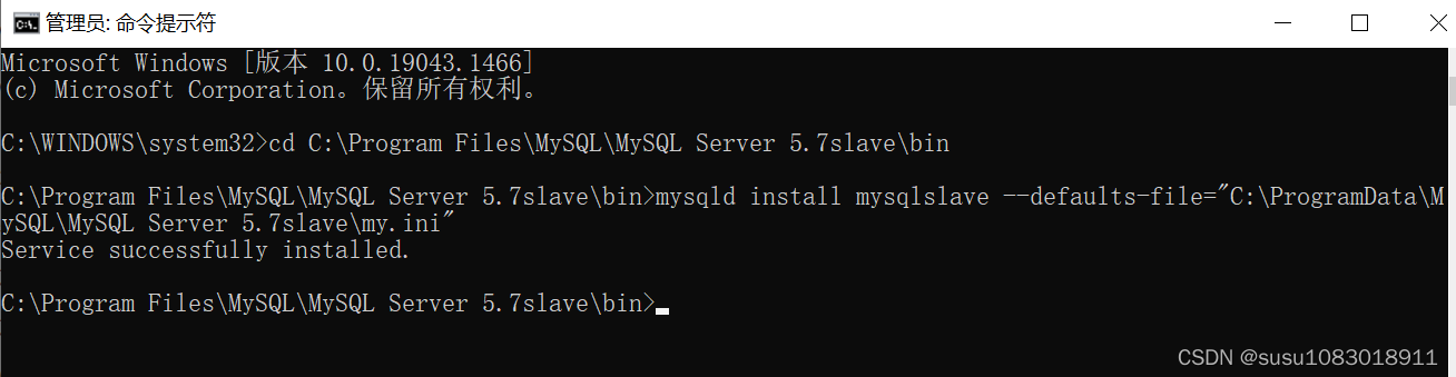 用管理员权限打开cmd,在从库的bin目录下,执行:
