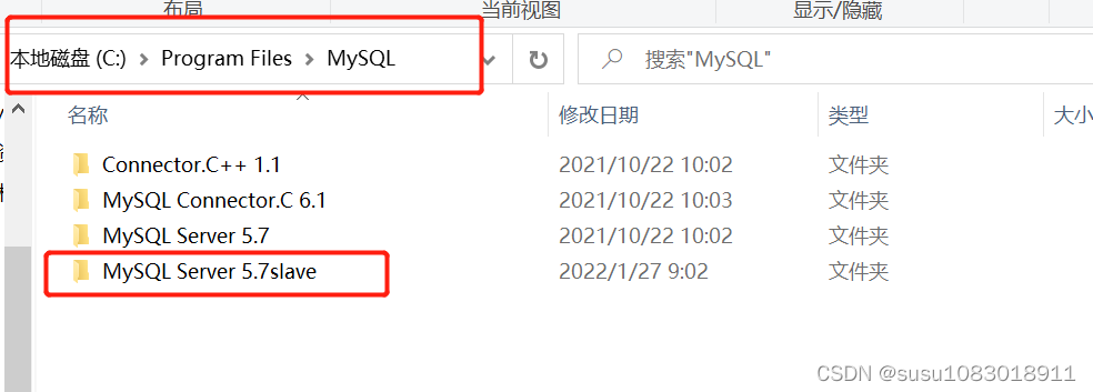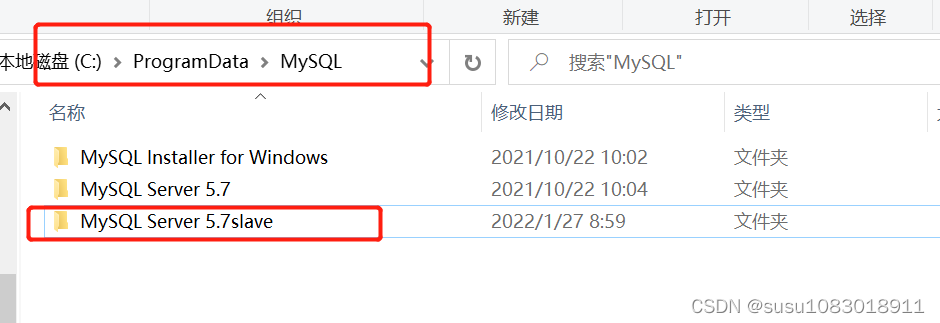 2.找到mysql的安装路径,复制一份MySQL Server5.7 我改名为MySQL Server 5.7slave