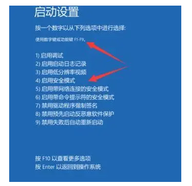5、电脑此时会重启电脑,重启后会看到如下图所示的这个界面。按一下数字“4”就选择的是安全模式。