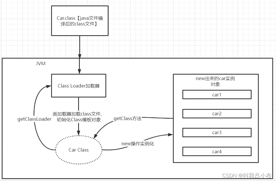 - 一个class文件对应一个class模板类对象,即不管Car.class执行多少个carClass,这些carClass都是同一个class模板对象