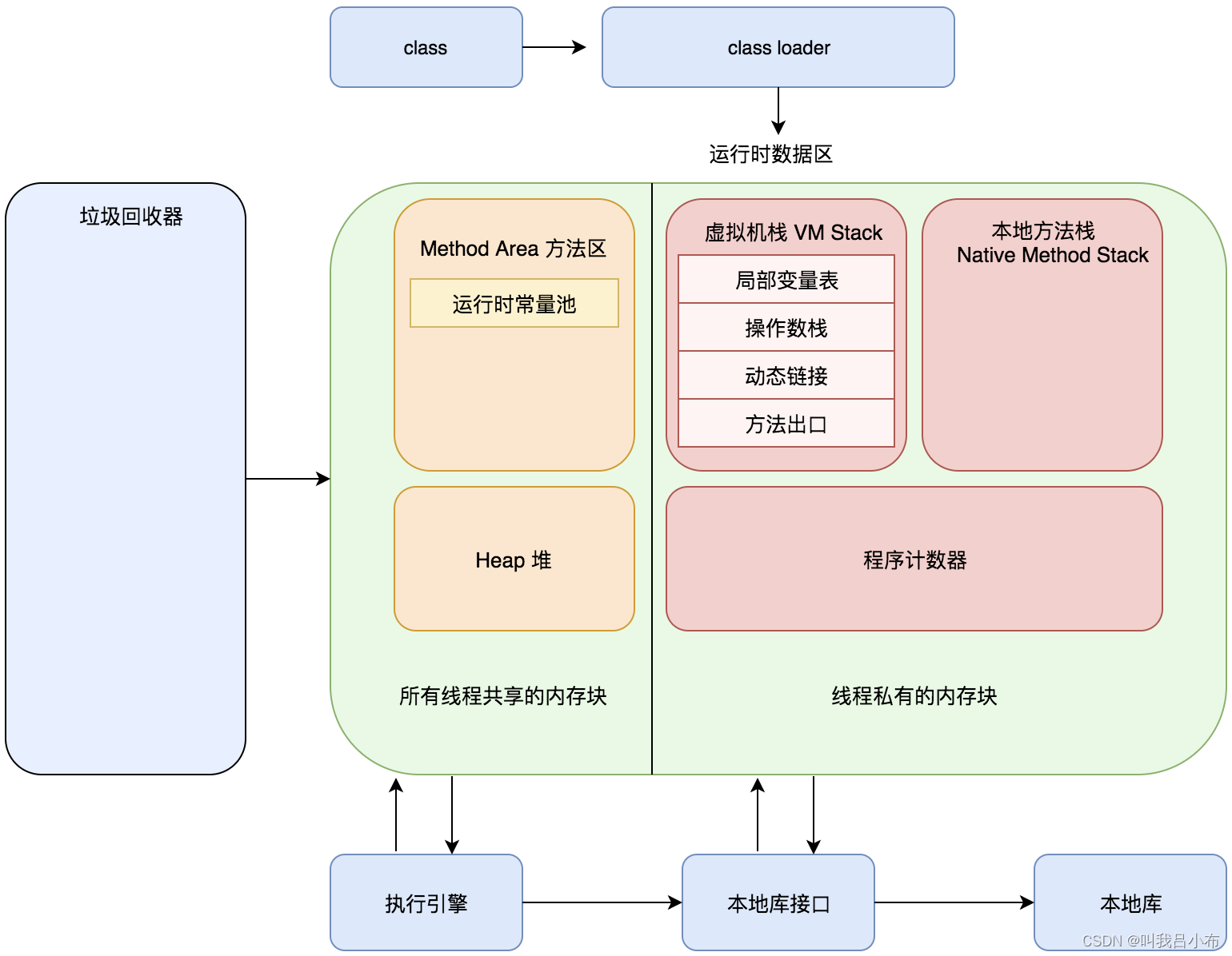 - 凡是带了native关键字的,会进入native本地方法栈,然后调用本地方法接口【JNI-Java native interface】