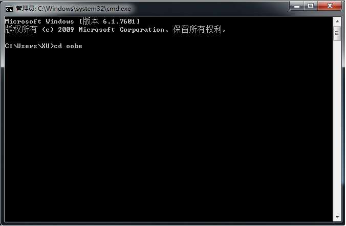2、接着在命令提示符中输入指令:cd oobe,按回车确认。
