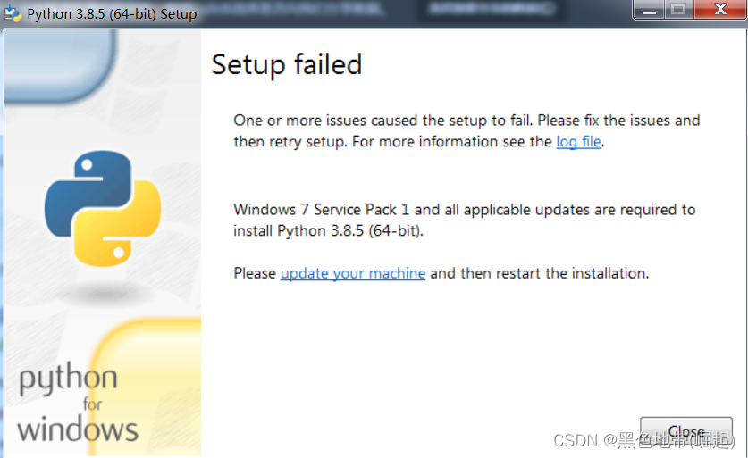 windows 7 使用由于没下更新包,没打补丁,出现安装python3出错“update you machine”