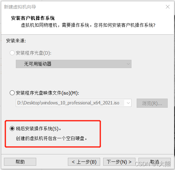 计划在VM虚拟机器中安装一个Windows 10系统,该系统将根据在线课程通过虚拟机器的灯光驱动器装入。