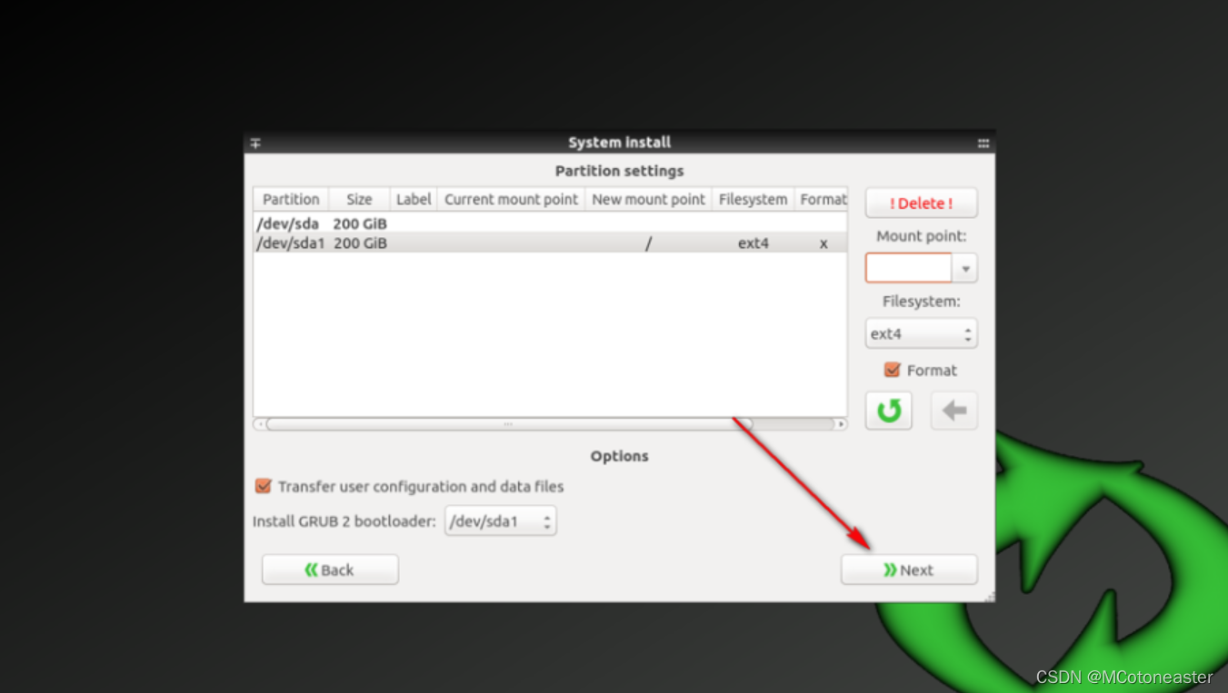 注意: 必须有一个分区/ 启动/ efi, 左下角必须从这个分区中设置; 第二是左下角必须选中, 必须选中它, 以便可以设置副本和数据!