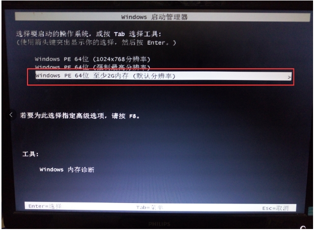 5. 然后,个人电脑重新进入Windows启动管理器,PE系统显示BIOS启动已经修改。