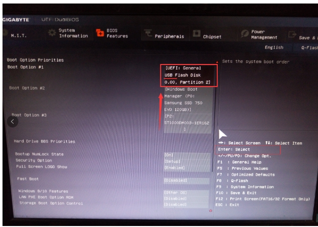 另一方面,缺乏关于国家状况的知识,也缺乏关于国家状况的信息。这个表示选择项目,USB 启动选项应移到列表的顶端 。因此,在键盘上使用“ ” 键, 导航到第一个项目, 在下面使用“ USB” 一词 。要选择, 请在键盘上使用“ 输入” 键 。然后,用钥匙,去到图标的位置。以保证系统能识别。