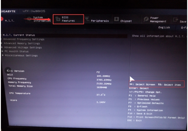 2. 在访问Bios操作页面时,您可以看到屏幕右侧下方菜单栏的第一行,提示是 " :秘密预言 " ;这提醒人们,我们可以选择菜单,因此我们按 ",直到我们到达 " BIOS " 。
