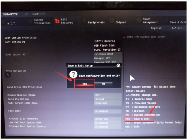4、修改好后按键盘“F10”保存接着可以看到弹出一个“Save &Exit”窗口确认,选择“Yes”。