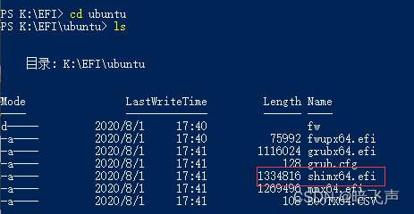 在此点, 导航到 EFI 驱动器, 并查找 Ubuntu 文件夹 。