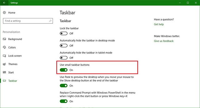 Windows 10还提供使用小图标的选项。小图标可以在义务栏上显示。这将有助于增加更多的应用空间。要显示较小的符号,请右键单击义务栏,选择义务栏设置,按下微小的义务栏按钮启动开关 。